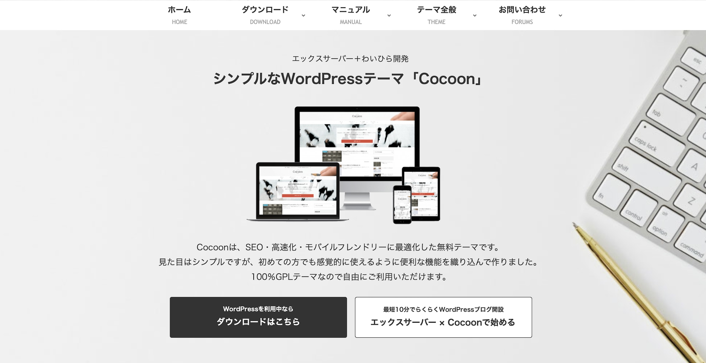 Cocoonは、WordPressのテーマの中でも特に人気が高い選択肢の一つです。シンプルでありながら機能が豊富で、初心者から上級者まで幅広いユーザーに対応しています。