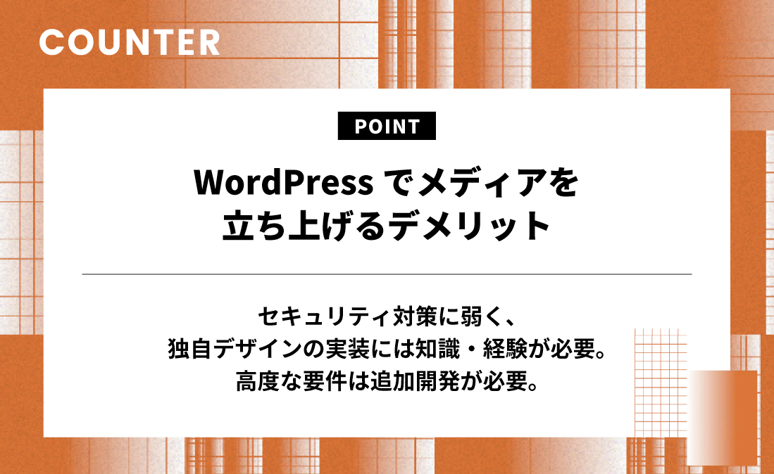 WordPressは多くのテーマやプラグインを提供しており、初心者でも比較的簡単にオウンドメディアを立ち上げられる一方、デザインにこだわりたい場合、コーディングの知識が求められることがあります。