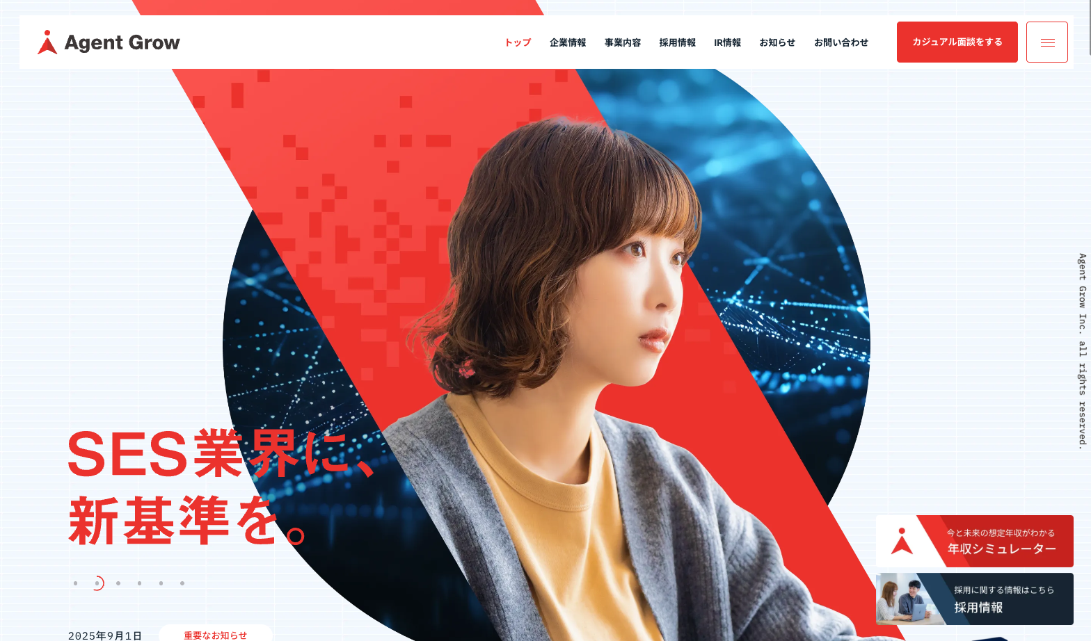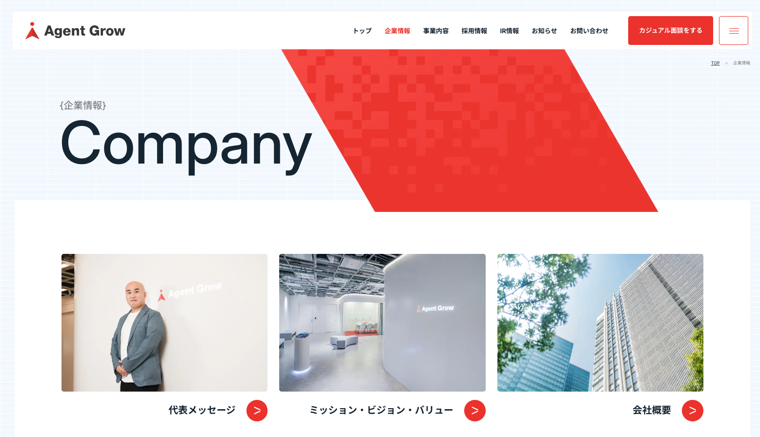 株式会社エージェントグロー様のコーポレートサイトをCOUNTERで制作しました。