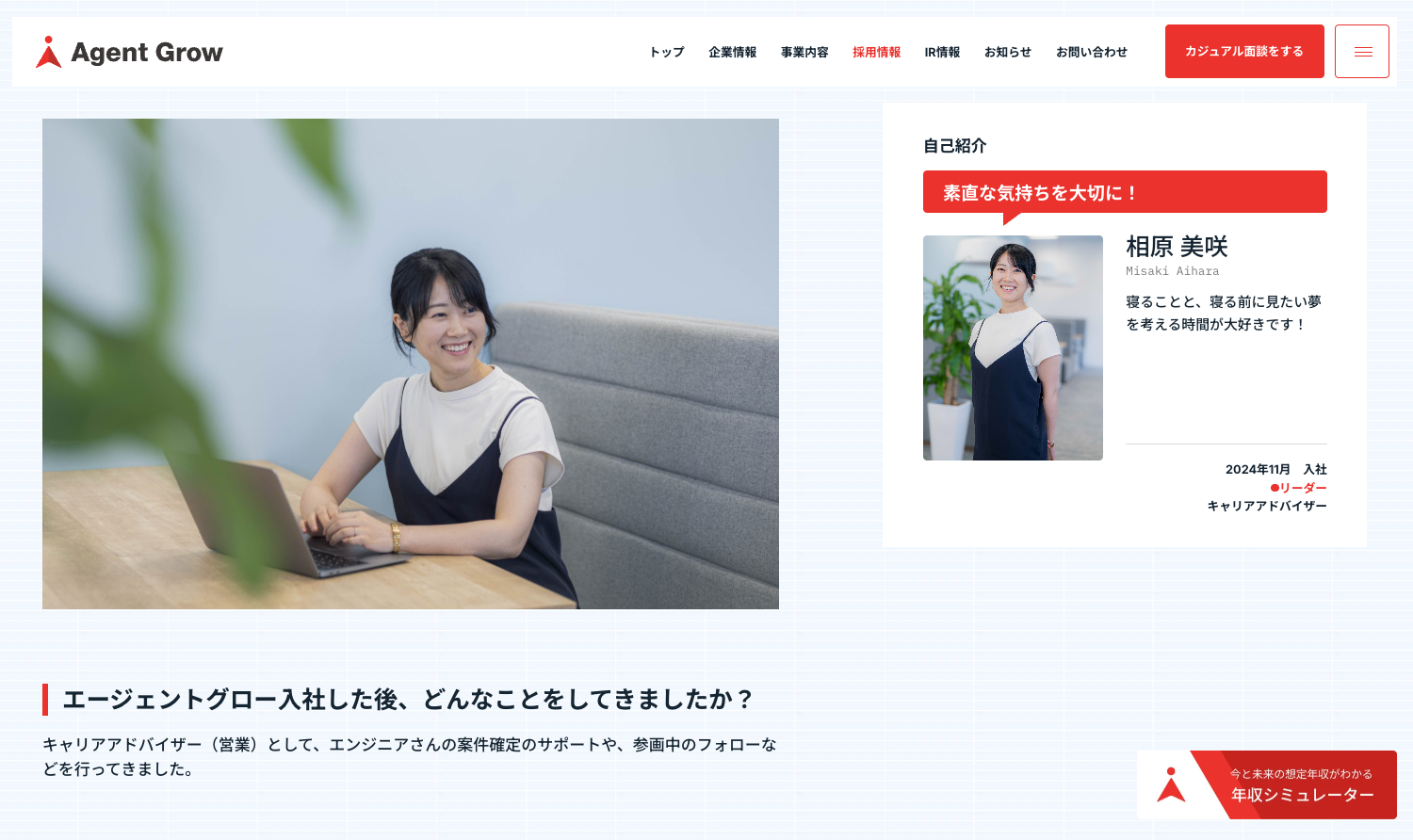 株式会社エージェントグロー様の採用サイトをCOUNTERで制作しました。