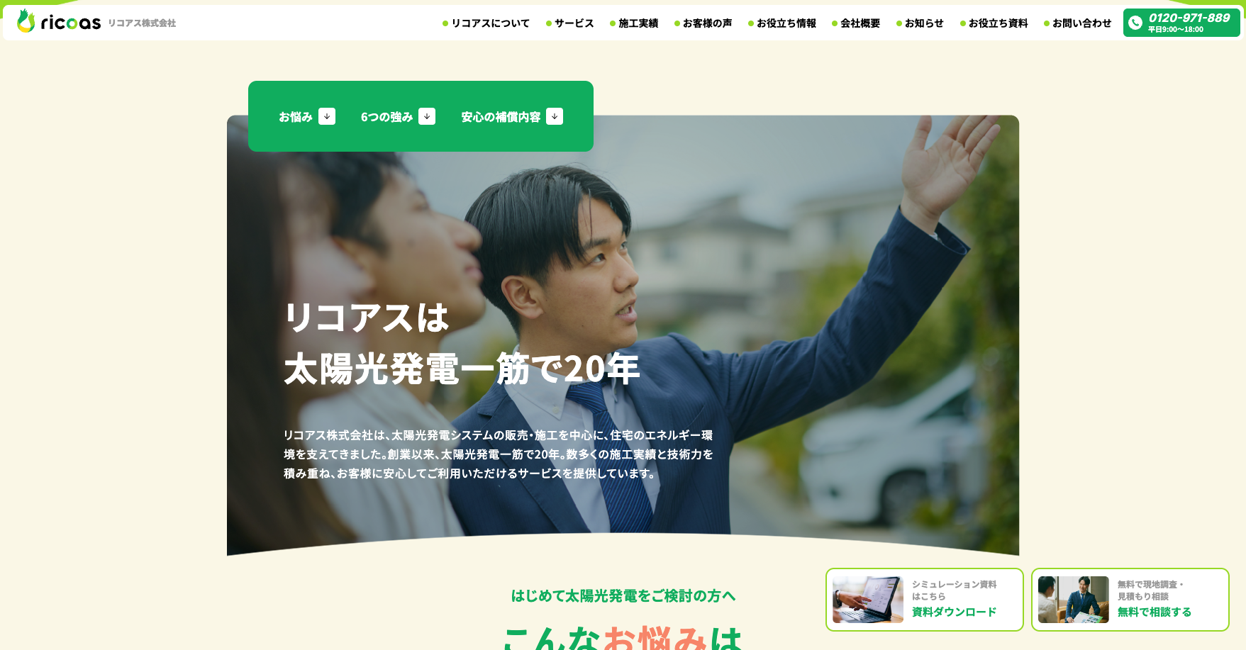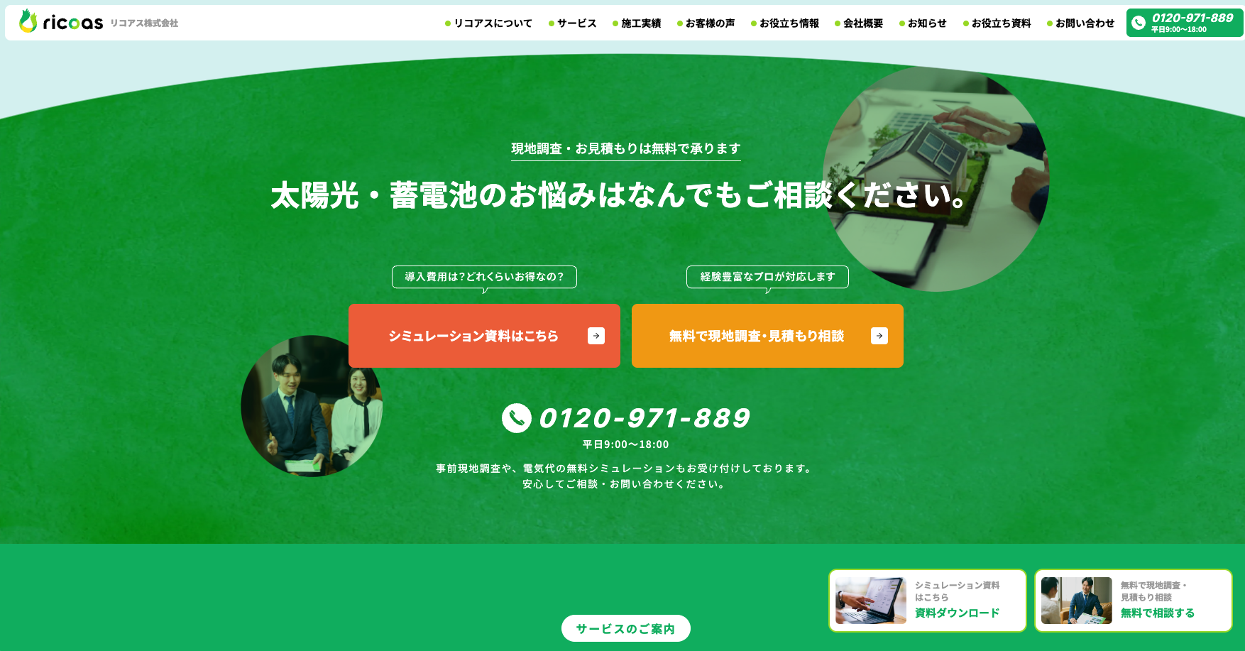 千葉県にある太陽光発電支援企業であるリコアス株式会社様のコーポレートサイトリニューアルを手掛けさせていただきました。ロゴデザイン、写真、webサイト構築をCOUNTERで担当させていただきました。