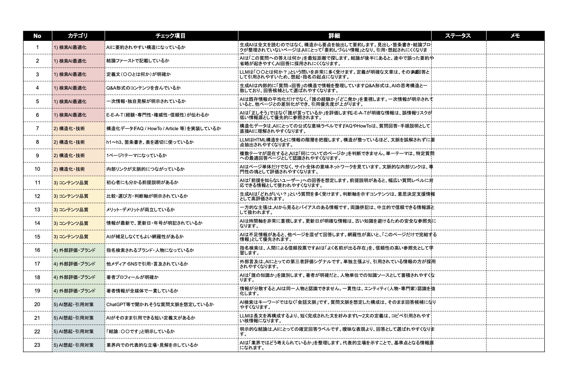 COUNTER株式会社が提供するAIOチェックリストです。無料でダウンロードできます。